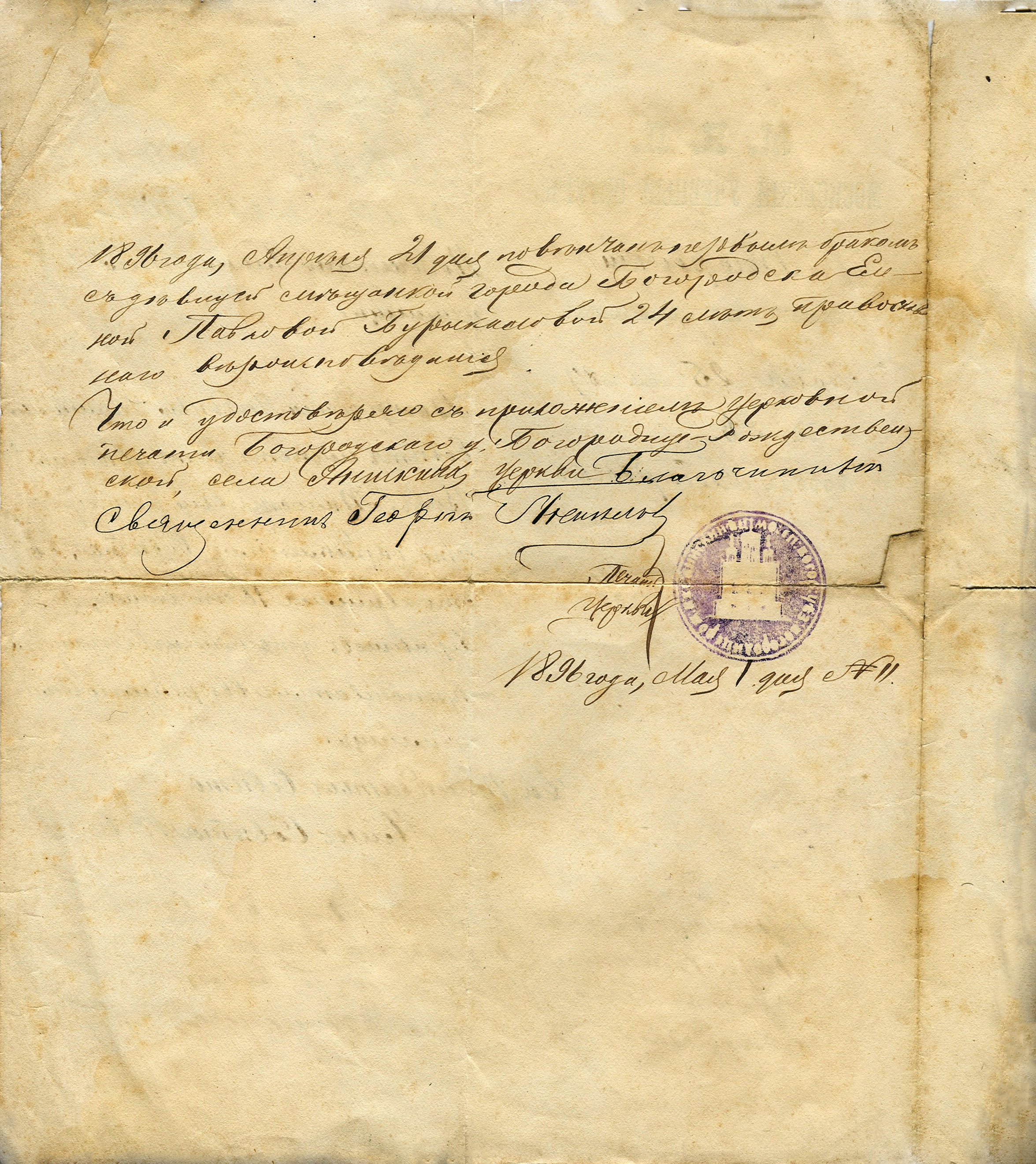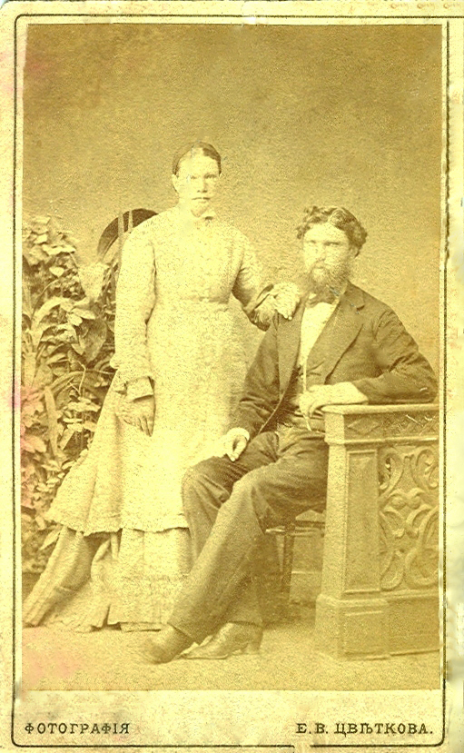 Очень предположительно это свадебная фотография Павла Бурыкалова с женой, главы большой семьи Бурыкаловых в Анискино. Он прожил огромную жизнь, 105 лет, был старостой Анискинской церкви Рождества Богородицы. Был женат дважды. От первого брака его дети: Владимир Павлович (1850е - ), предположительно жил затем в Кержаче; Вера Павловна (1850е - нач.1940х), жила в Анискино; Любовь Павловна, в замужестве Курицына (1850е-1935), жила в Осташково Тверской губ., работала акушеркой, была крёстной матерью детей сестры Елены - Бориса и Владимира Чернышёвых.