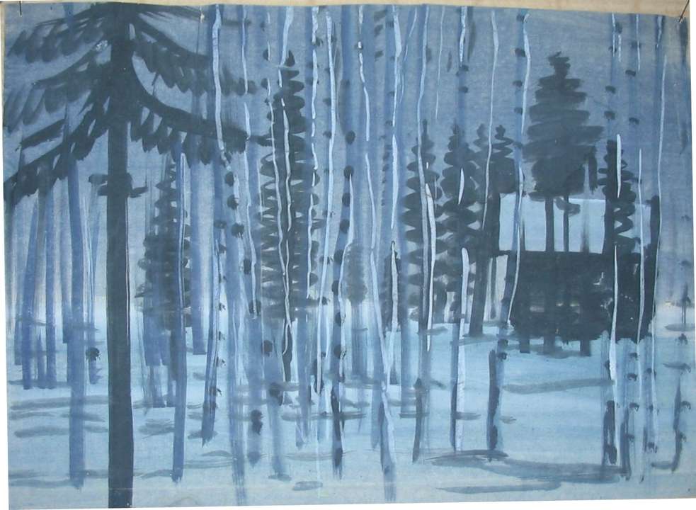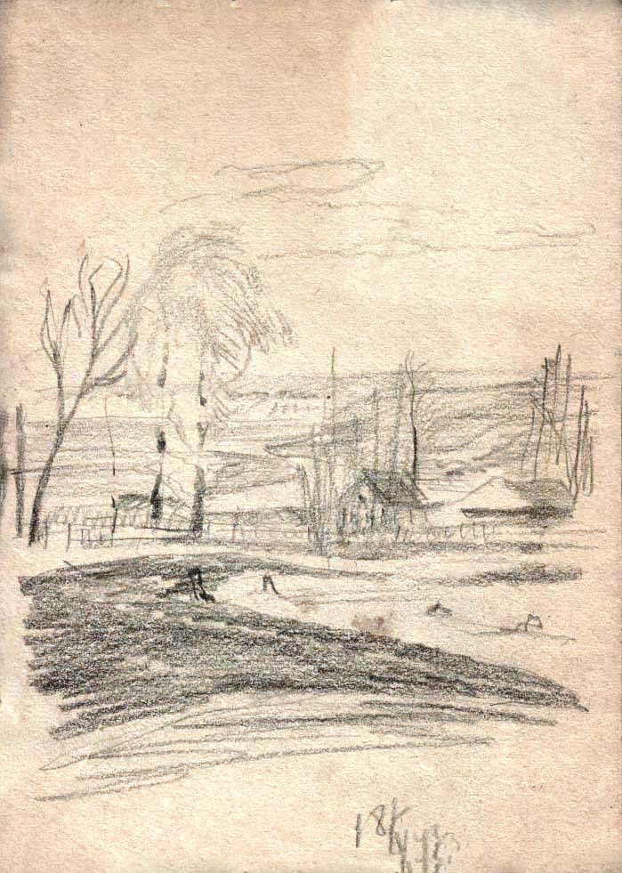 Написал еще несколько этюдов на бумаге клеевыми красками. Все они примерно такого же качества, как и все мое остальное. Я замечаю в своих работах стремление к простоте цвета. И главное, это чтобы было так: я увидел и нарисовал так, как будто я и понятия не имею о приемах живописи, композиции и прочих вещах.