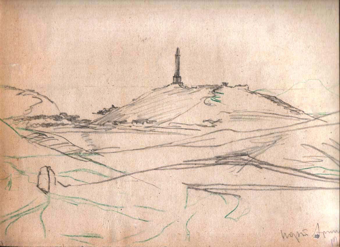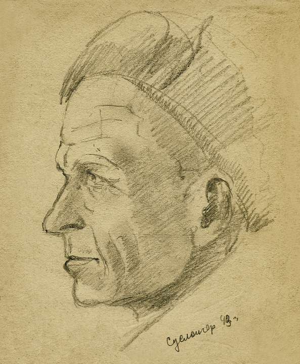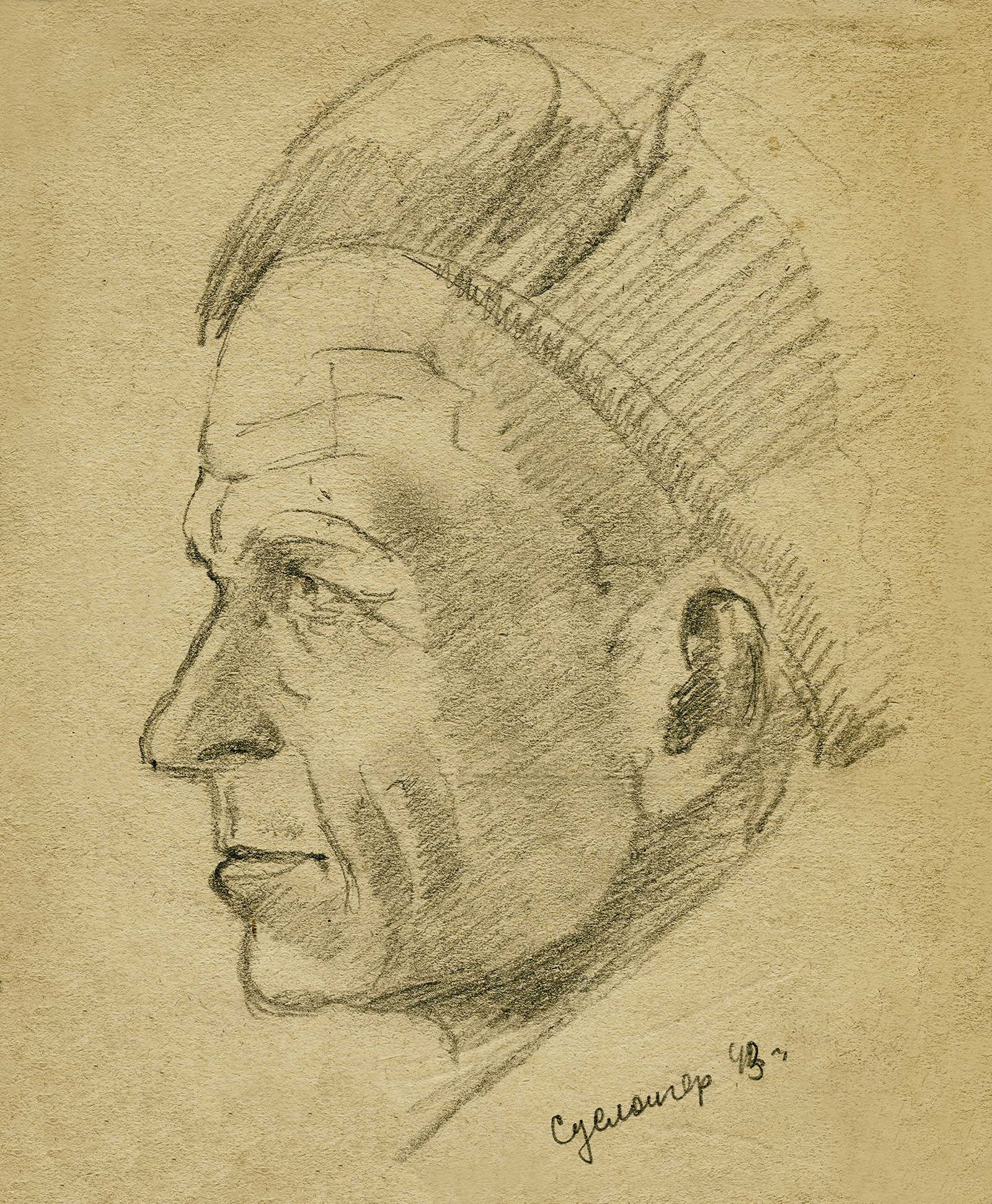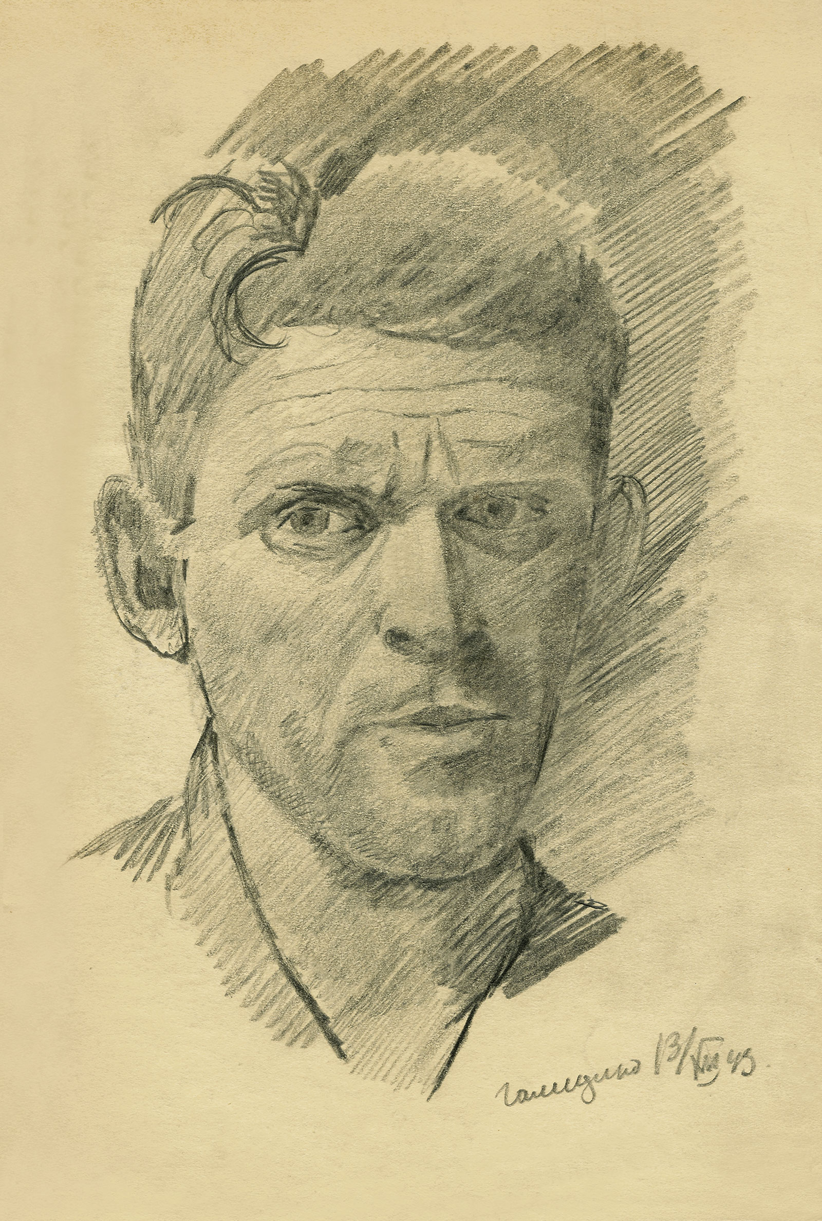 22 сентября 1943 г. «22 / 1Х 43 г. Так я тогда и не написал ничего. А пять дней пролетели так быстро, что я удивился. Мы делаем срочную работу – карту хода военных действий. А вечером не было света. Ты хочешь зарегистрироваться, так сказать, законным браком. Я ничего не имею против, только никак не соберусь посоветоваться с одним знакомым юристом, как это сделать. Сам я не знаю. А он – большой человек, начальник штаба, и его трудно поймать наедине, так как это – личный вопрос. Какое это имеет значение – я не знаю, но ты, наверное, имеешь какие-то неудобства. Так что я целиком иду навстречу. Ну, Мама уехала. Тебе, наверное, еще труднее в смысле хозяйственном… Сегодня закончил с обжигом и запатинировал под бронзу свою последнюю статуэтку. Они почти профессиональны. А в некоторых отношениях, композиции и живости движения, — лучше многих виденных мною. Но, к сожалению, приходится их отдавать в неверные руки. Сейчас, вечером, наклеил бумагу для эскиза. Завтра, если будет свет, начну работать, голова уже занята этим, и хочется скорее посмотреть, что из этого выйдет. И вообще мне снова хочется работать. Хочется мне еще написать пейзаж с озером и сухими стволами деревьев, а по земле растут иван-чай и мох-ягель. И еще два пейзажа, о которых я тебе писал. Наталка, что тебе делать с печкой, с козой и другими делами – я не знаю, что посоветовать. Я и раньше был непрактичным, а теперь и совсем нереальный человек. Ну, я спешу закончить письмо. Сейчас погаснет свет. Может быть, допишу завтра утром. Кругом меня горячо обсуждаются последние известия: Чернигов, Гомельское направление и другие. Мне не хочется их обсуждать, я не очень оптимистически настроен на скорый конец войны. Это будет еще длинная и тяжелая история. А скорый и хороший конец всем приятен, и я тоже буду очень рад, как и все, если война скоро закончится. Ну, до свидания. Как-нибудь карабкайся и крепись, и вообще не унывай. А старайся жить и в этих условиях; ведь ты знаешь, что и до войны большинство людей жили так, как ты сейчас живешь – без творческой работы, без перспектив. Будь здорова, целую крепко. Папка. Уже ясное осеннее утро 23 сентября».