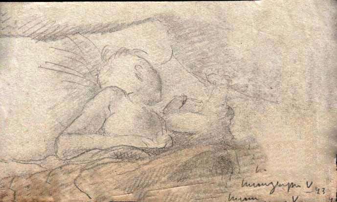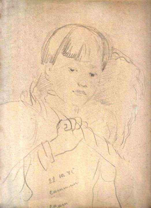 На обороте клочка бумаги с рисунком отца его кисти руки написано: «Вот набросок с моей руки. Тоже, конечно, не то, но нет никаких возможностей или, может быть, сил, что бы хоть час в день поработать как следует. Но за это буду биться. Ну, всё, всего. Рисуй при малейшей возможности».
