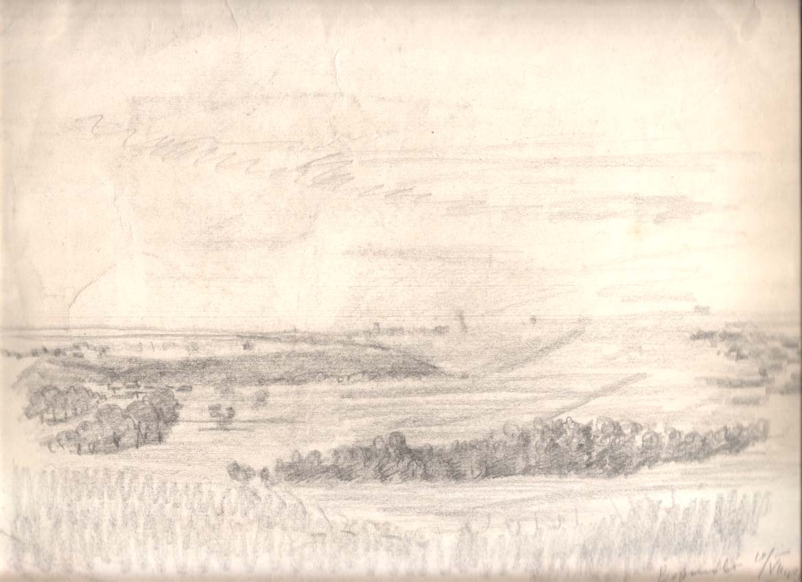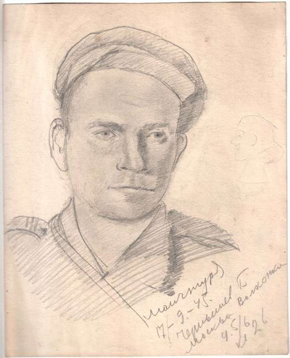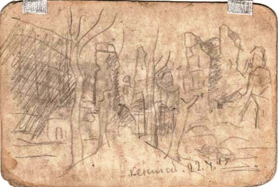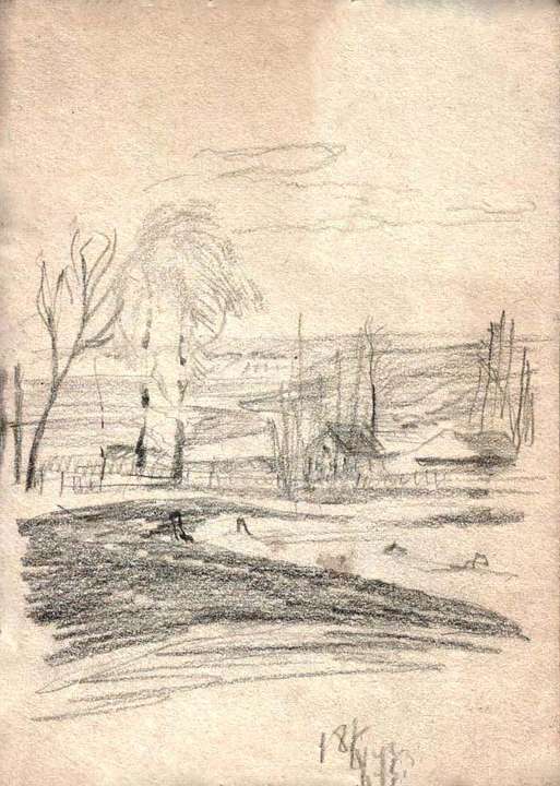 Я тебе не писал до последней минуты о том, что я уже с 13 марта в Восточной Пруссии. Не хотелось по-пустому тебя беспокоить. Но завтра, а может быть и сегодня, ухожу на передовую. Правда, я один день был на передовой (ночью) и ничего особенного не испытал. Нахожусь в артиллерии. Но это все равно очень мало преимуществ, только в атаку не идти. Самочувствие хорошее, гораздо лучше, чем в Алабино. Здоровье пока не подкачивает. Питание отличное. Погода хорошая, весна, снега нет, зеленеют поля, поют жаворонки. Хожу и любуюсь природой, и хочется писать. И я почти каждый день рисую портреты товарищей. Войну я как-то не замечаю, да и ничего приятного нет, одни разрушения, мусор и грязь. Города и села Германии очень однообразны и скучны; каменные дома с красной черепичной крышей довольно комфортабельно оборудованы, но на всем печать духовного убожества и мелочного практицизма, и мещанского вкуса. Я ожидал в Германии встретить это, но не думал, что это - в такой степени. А природа, особенно леса, здесь почти как под Москвой. И поля сейчас красивые – серебристо-лиловые, и очень весело поют жаворонки.
