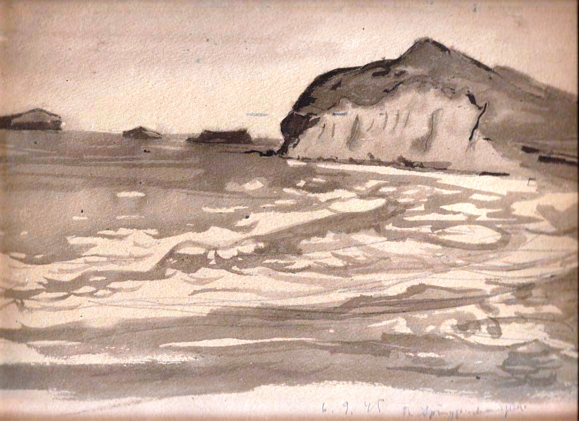 18-19 апреля 1945 г. «18/1У 45г. Вост/очная/ Пруссия, близ Пиллау. Здравствуй Наталка! Вот мы дошли до моря. Осталось, может быть, несколько дней боев. Но ведь не знаешь, где тебя может поймать пуля. Вот сейчас рядом разорвался снаряд и убил лошадь, а я как сидел, так и сижу. Я тебе писал о том, что представлен ко второй награде, просят Орден Красного Знамени. Это получилось само собой. Я, вдвоем с ездовым, с пушкой заскочили в городок, занятый немцами. Мы прыгнули в траншею, а коней немцы тотчас перестреляли. Мы сидели и боялись немцев, а они – нас. Но наша пехота видела, как мы влетели в город с пушкой, и поползли за нами следом. Немцы тотчас сдались в плен, а мы открыли из пушки огонь по ближайшим домам и выкурили из них засевших там немцев. Вот какие дела. Страшно, между прочим, вступать в бой, а в бою ничего не замечаешь. Чувствую себя хорошо, здоров. Как вы там живете и как твои дела, я стараюсь не думать. Все время проходит в копке блиндажей, езде и стрельбе. Спать приходится главным образом днем, где попало. Спишь в своем ровике даже тогда, когда вблизи рвутся снаряды и мины… Пробовал делать зарисовки, но все мнется, рвется и мочится. С трудом сохраняю три свои репродукции и иногда любуюсь ими… Книг хороших и картин не встречал. Ну, пока. Будь счастлива с детьми. Целую крепко всех. Борька». «19 / 1V. Наталушка, бои кончились. Нахожусь в тылу, готовимся к дальнейшим боям. Спешу. Борька»