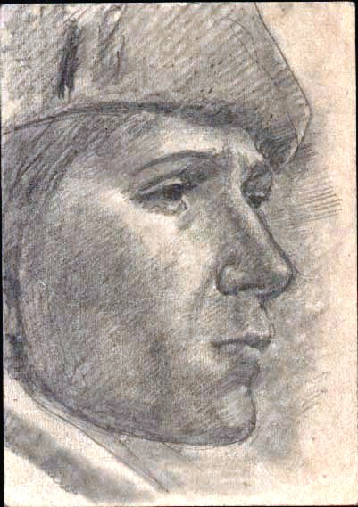 Что касается Александра Невского, то возможно, я буду его еще писать, но не знаю, - ведь можем мы неожиданно отсюда уехать, а я, тем более, строевой, в любую минуту могу быть затребован в маршевую роту. То же и с другим плафоном. Эскизы мне бы очень хотелось переслать тебе или оставить их здесь у кого-нибудь из местных жителей для тебя.